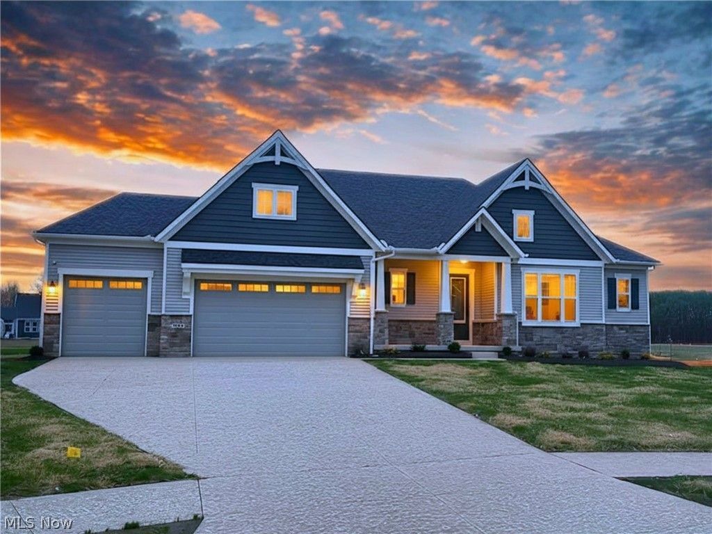 IMMEDIATE OCCUPANCY! Your dream home is awaiting at The Crossing at French Creek in North Ridgeville. Discover luxury, comfort, and style in this brand-new, never lived in, custom-built sprawling ranch tucked away on a peaceful cul-de-sac with a serene pond view. Step inside to soaring 10' ceilings, warm accent lighting, and an open layout perfect for entertaining. The gourmet kitchen shines with a spacious island, double wall ovens, upgraded gas cooktop, upgraded stainless steel appliances, and beautiful cabinet lighting above and below. With 3 bedrooms and 4 baths?including two gorgeous en-suites on the main floor?you'll have space for everyone. For even more living space, enjoy the finished basement with an entertainment area, the 3rd bedroom, a full bath, and an office. Plus, there's another office on the main floor. Relax on the covered porch, take in the pond view, or unwind in your luxurious tiled shower. This home has abundant upgrades throughout, including crown moldings, accent lighting, a built-in sound system, a central alarm system, plus many more. Close to highways, the turnpike, and shopping?everything you want is right here! Recently completed, you can be the first to call this incredible home yours. This home includes all of the builder's warranties. The lawn and landscaping were installed. There's so little for you to do other than move in and make this your new home.
